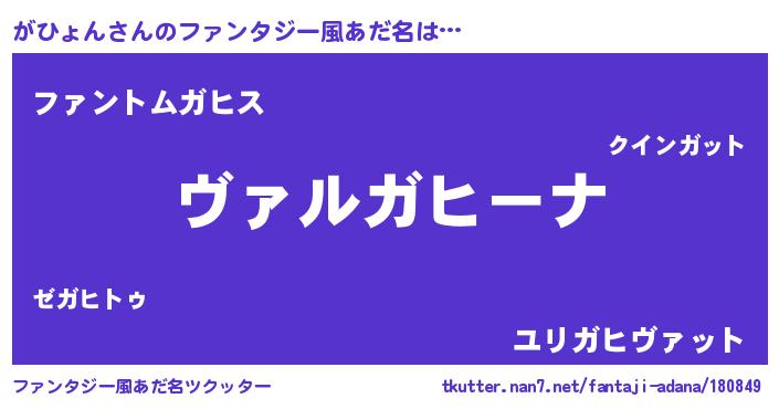 | 男性向けラノベタイトル風あだ名 | 『魔弾の王とがひょん』 |