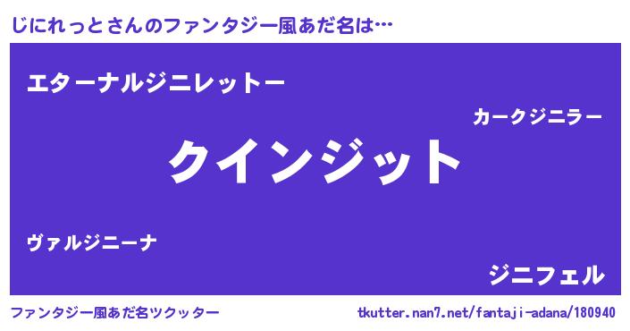 | 女子向けラノベタイトル風あだ名 | 『じにれっと夫妻のなれそめ』 |