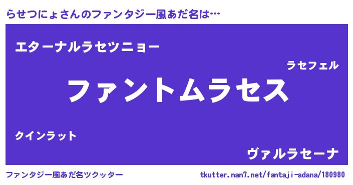 | 女子向けラノベタイトル風あだ名 | 『らせつにょは平凡を望む』 |