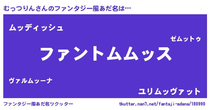 | ヒーロー風カッコイイあだ名 | 『黄金騎士ムッ』『ネオムッツリン』 |