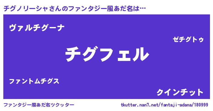 | 男性向けラノベタイトル風あだ名 | 『チグノリーシャアートオンライン』 |