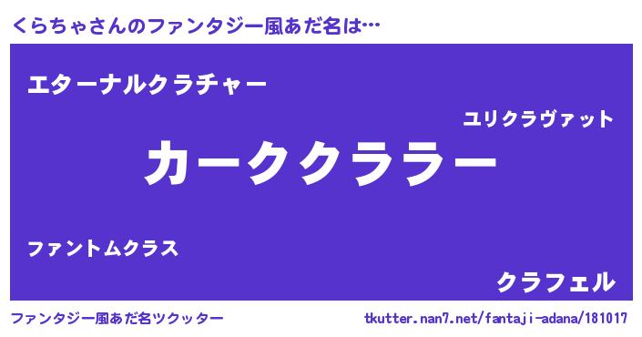 | 男性向けラノベタイトル風あだ名 | 『はたらくくらちゃさま!』 |
