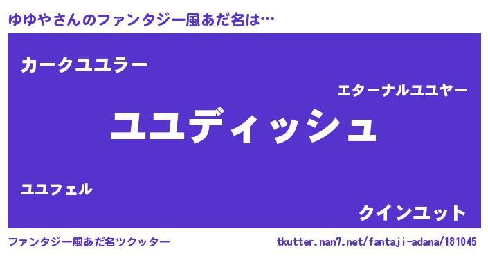 | ヒーロー風カッコイイあだ名 | 『ネオユユヤ』『愛の使者ゆゆや』 |