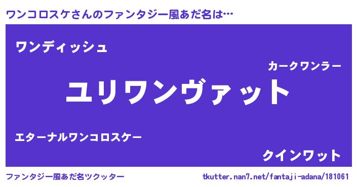 | 欧米人風あだ名 | 『トリンドルワンコロスケ』 |