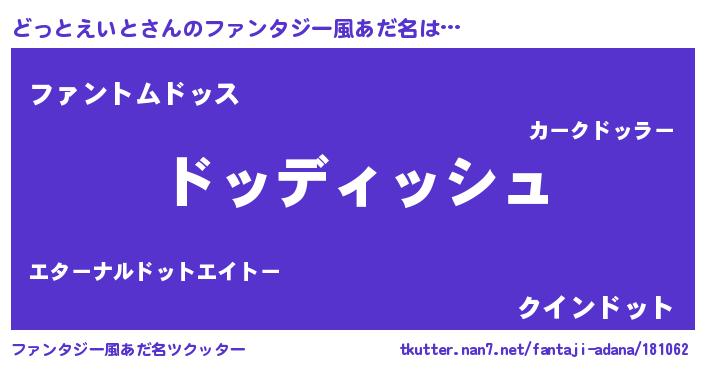 | ヘコむあだ名 | 『どっとえいと(震え声)』『どっお』 |