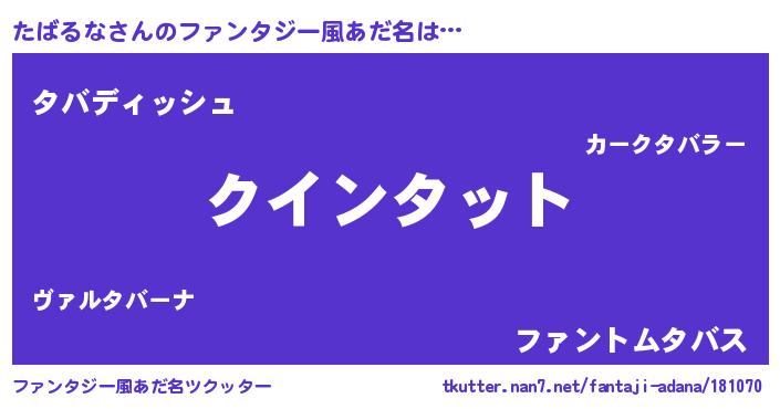 | 男性向けラノベタイトル風あだ名 | 『たばるなに滅ぼされるだけの簡単なお仕事です』 |