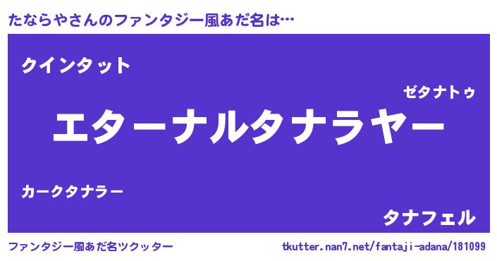 | 意味不明あだ名 | 『たならやフォーエバー』『自称たならや』 |