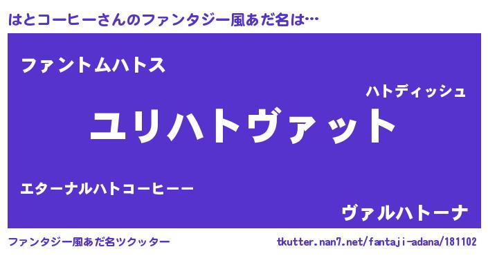 | 男性向けラノベタイトル風あだ名 | 『ハトコーヒースレイヤー』 |