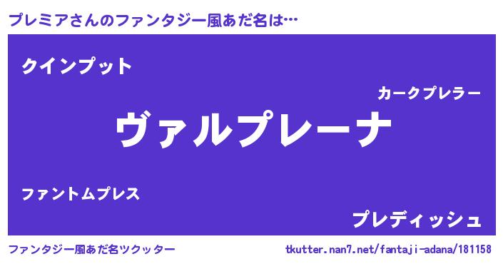 | 男性向けラノベタイトル風あだ名 | 『この素晴らしい世界にプレミアを!』 |