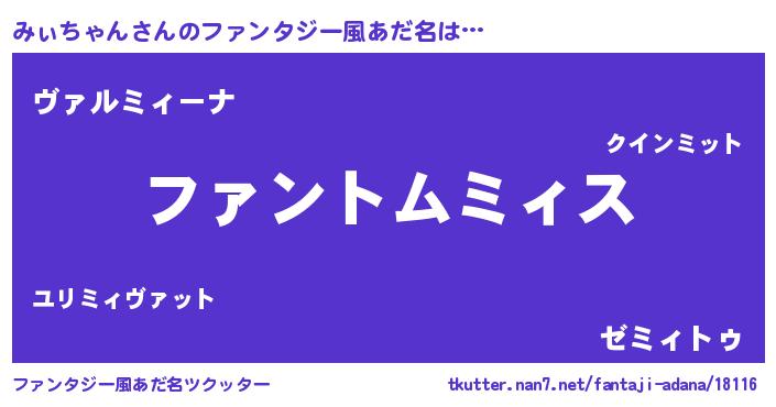 | ヒーロー風カッコイイあだ名 | 『魔戒騎士ミィ』『仮面ミィダー』 |