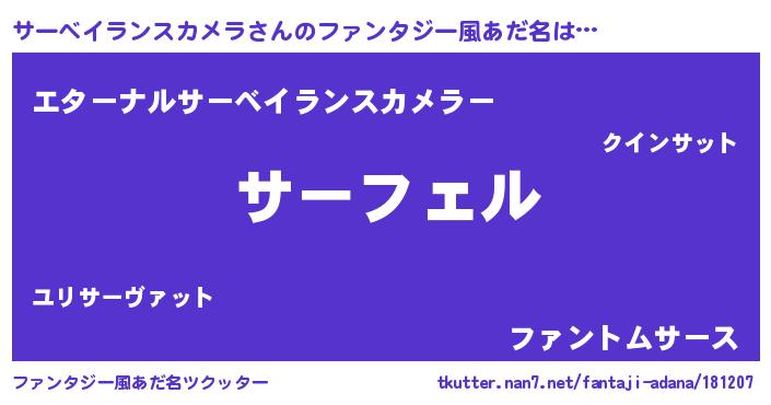 | 男性向けラノベタイトル風あだ名 | 『サーベイランスカメラアートオンライン』 |