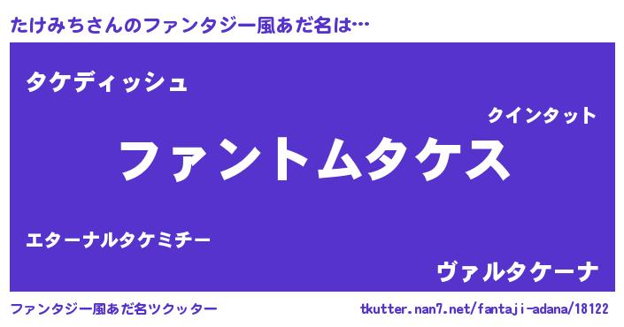 | 男性向けラノベタイトル風あだ名 | 『たけみちの嫁は女の子じゃないと思った?』 |