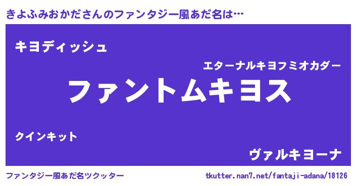 | 男性向けラノベタイトル風あだ名 | 『ダンジョンにきよふみおかだを求めるのは間違っているだろうか』 |