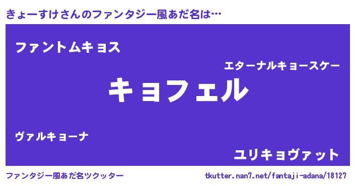 | ヒーロー風カッコイイあだ名 | 『スーパーキョースケ』『幻影騎士キョ』 |