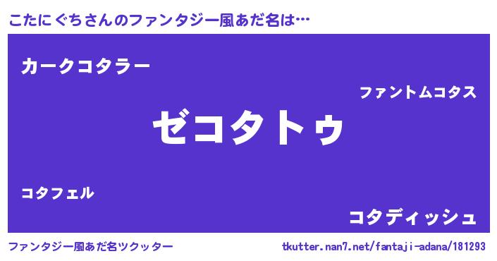 | 男性向けラノベタイトル風あだ名 | 『Re:こたにぐちから始める異世界生活』 |