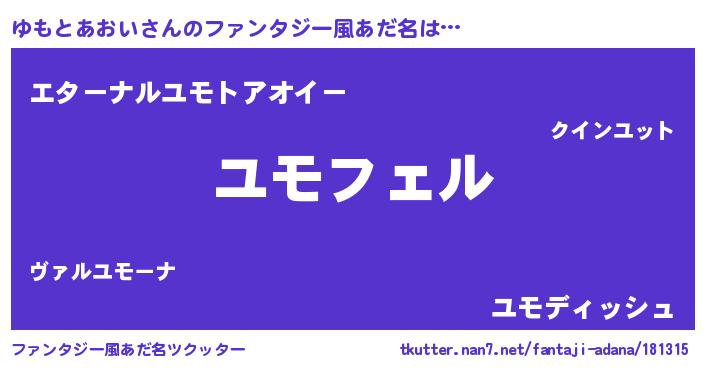 | ポケモン風あだ名 | 『ユモチュウ』『ユモトダネ』 |