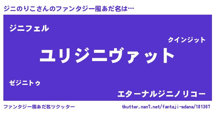 | 男性向けラノベタイトル風あだ名 | 『ジニのりこ~年齢イコール彼女いない歴の魔法使い~』 |