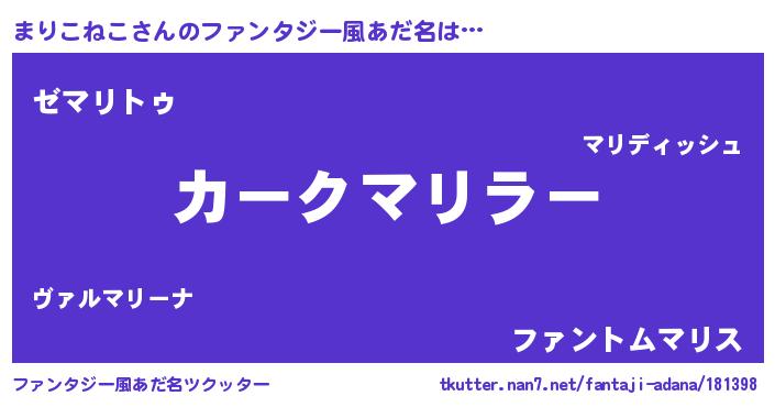 | 欧米人風あだ名 | 『まりこねこ・ステッグマイヤー』 |