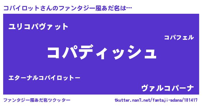 | 意味不明あだ名 | 『永久保存コパイロット』 |