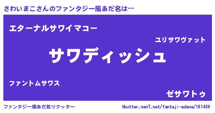 | 意味不明あだ名 | 『永久保存さわいまこ』『自称さわいまこ』 |