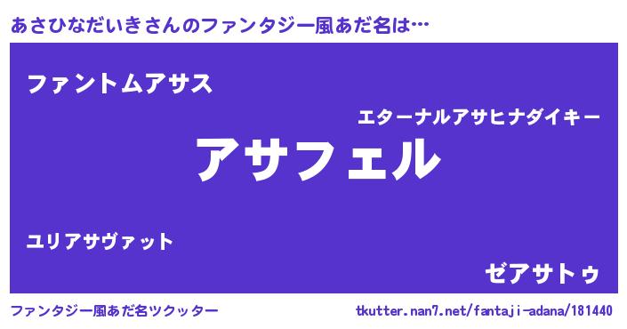| 男性向けラノベタイトル風あだ名 | 『アサヒナダイキアートオンライン』 |