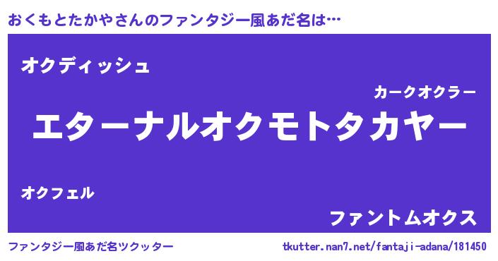 | 欧米人風あだ名 | 『おくもとたかやクリステル』 |
