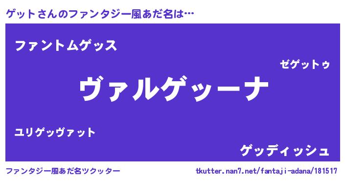 | ヘコむあだ名 | 『ゲッっちょ』『ゲット(笑)』 |