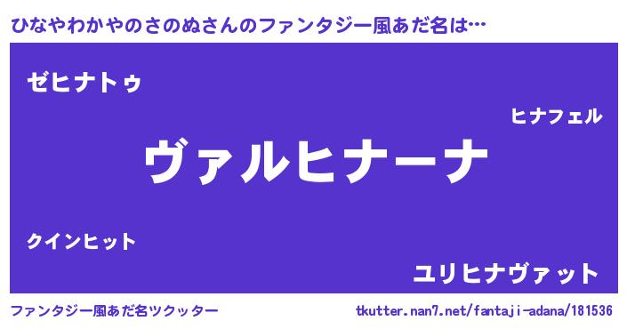 | 女子向けラノベタイトル風あだ名 | 『ひなやわかやのさのぬが死なない童話 林檎のひなやわかやのさのぬの診療簿』 |