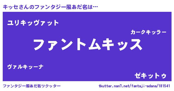 | 男性向けラノベタイトル風あだ名 | 『ダンジョンにキッセを求めるのは間違っているだろうか』 |