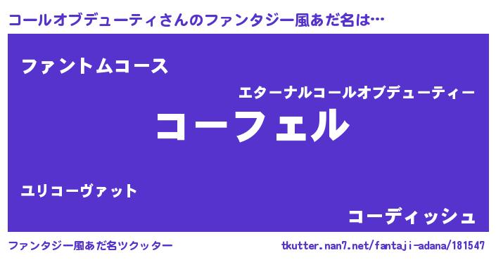 コールオブデューティさんのファンタジー風あだ名をツクッター!