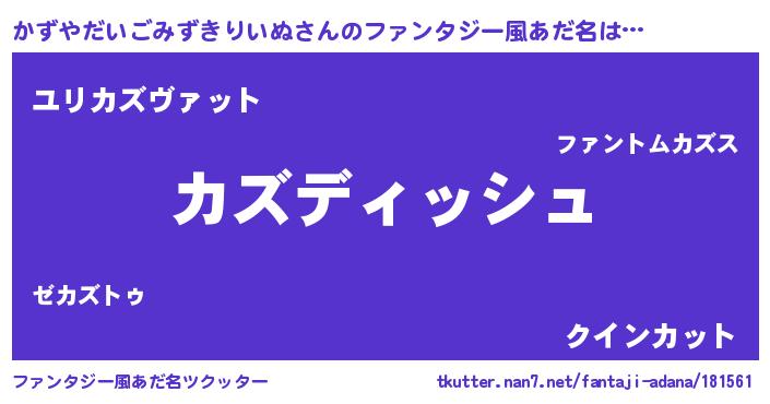 | ヒーロー風カッコイイあだ名 | 『ネオカズヤダイゴミズキリイヌ』 |