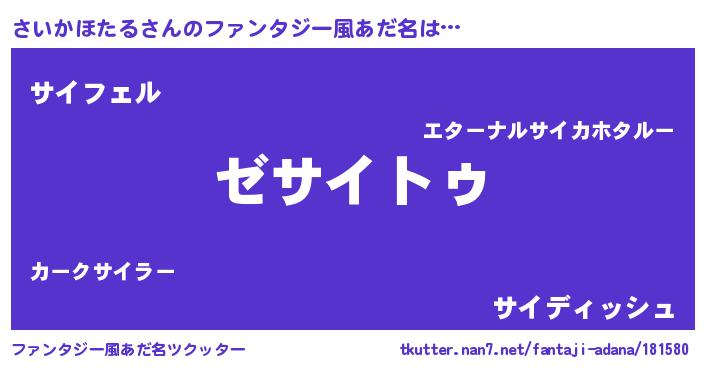 | 男性向けラノベタイトル風あだ名 | 『Re:さいかほたるから始める異世界生活』 |