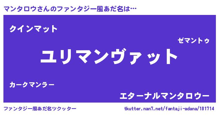 | 男性向けラノベタイトル風あだ名 | 『転生したらマンタロウだった件』 |