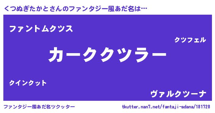 | 意味不明あだ名 | 『とにかく怪しいくつぬぎたかと』 |
