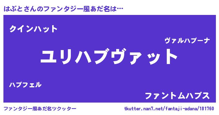 | 男性向けラノベタイトル風あだ名 | 『はぶとに滅ぼされるだけの簡単なお仕事です』 |