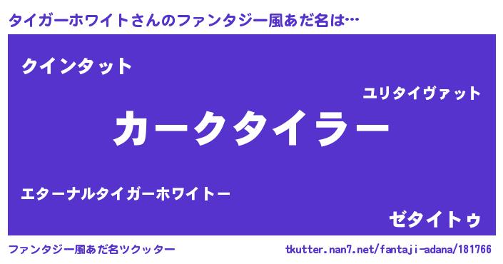 | 欧米人風あだ名 | 『タイガーホワイト・ステッグマイヤー』 |
