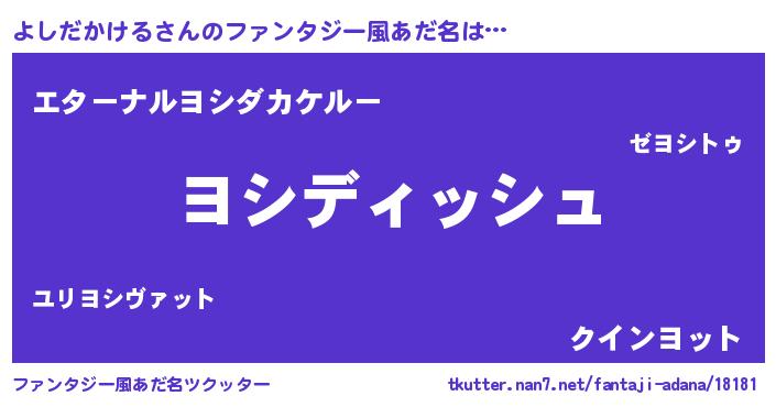 | 欧米人風あだ名 | 『ダルビッシュよしだかける』 |