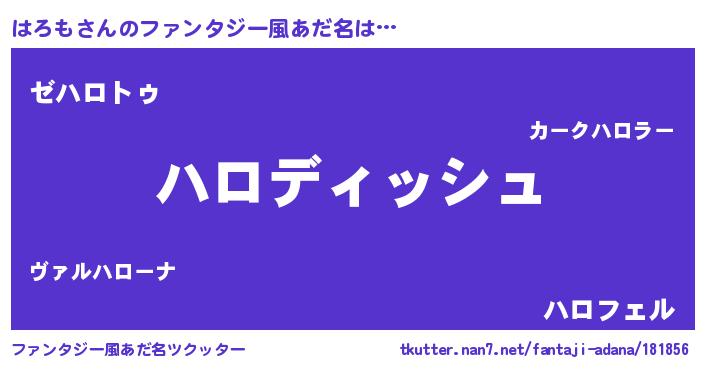 | 男性向けラノベタイトル風あだ名 | 『はろもという概念が存在しない退屈な世界 』 |
