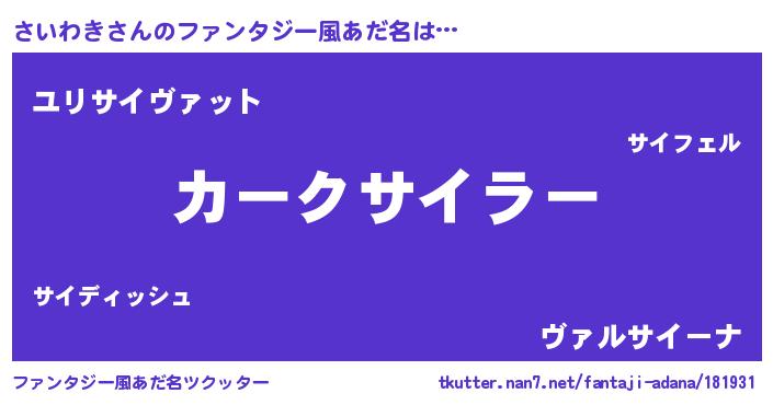 | ヒーロー風カッコイイあだ名 | 『仮面サイダー』『スーパーサイワキ』 |