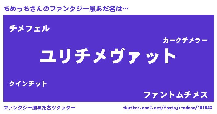 | 男性向けラノベタイトル風あだ名 | 『チメッチスレイヤー』 |
