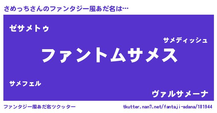 | 欧米人風あだ名 | 『アンジェラ・さめっち』 |