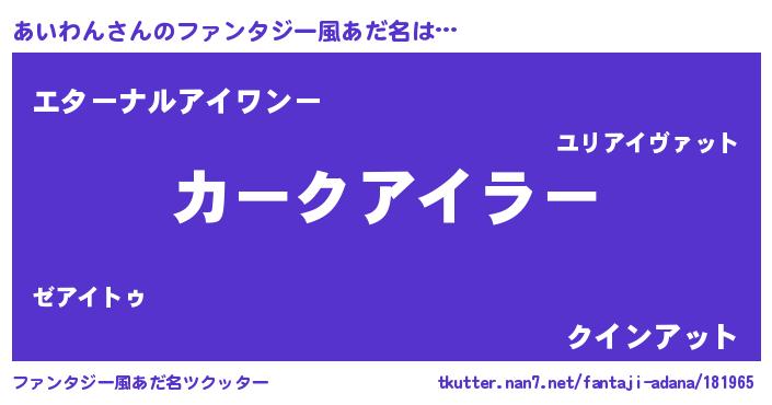 | 自動車の名前っぽいあだ名 | 『フェアーイ』『アクア』『アンR』 |