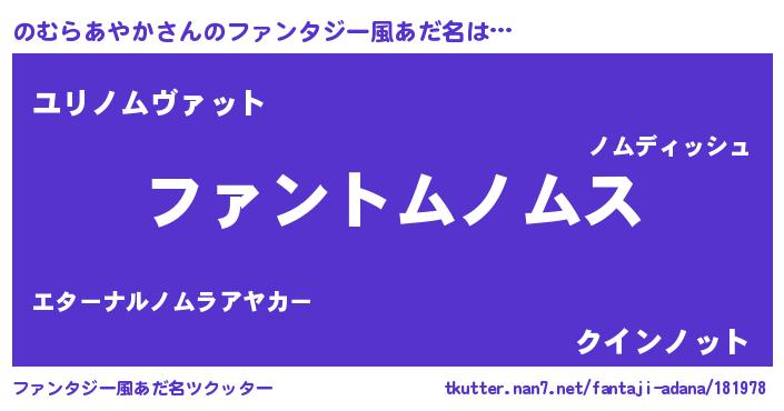 | ポケモン風あだ名 | 『ヒノムラアヤカ』『ノムキング』 |