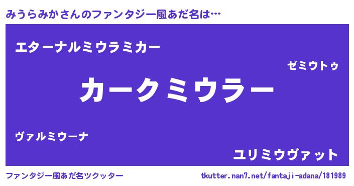 | 伝説のあだ名 | 『秘められし陰陽師みうらみか』 |