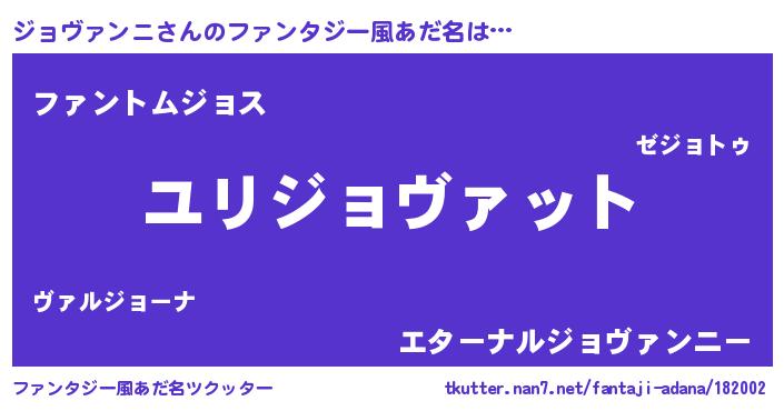 | 女子向けラノベタイトル風あだ名 | 『ジョヴァンニの玉の輿計画!』 |