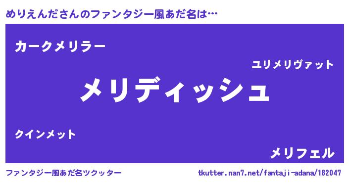 | ヘコむあだ名 | 『めりえんだ(苦笑)』『めりにー』 |