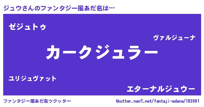 | 意味不明あだ名 | 『自称ジュウ』『ジュウフォーエバー』 |