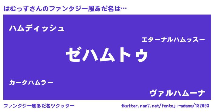 | 意味不明あだ名 | 『自称はむっす』『永久保存はむっす』 |