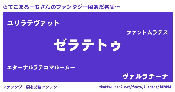 | 意味不明あだ名 | 『自称らてこまるーむ』 |