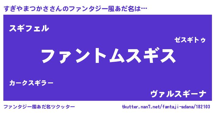 | ポケモン風あだ名 | 『ヒスギヤマツカサ』『スギゴンZ』 |